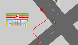 ・左折待ちを避けるパターン(左折車線が混雑している場合や、左折信号が長い交差点)