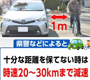 道が狭く1.0mの間隔が取れない場合は、自転車の横を通り過ぎる際に徐行(すぐに止まれる速度)をしなければなりません!